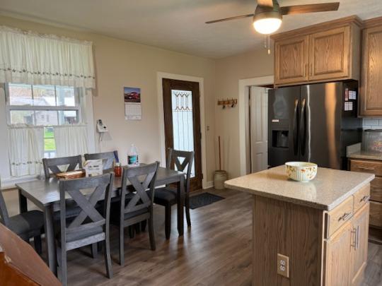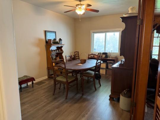 Nicely maintained home located on 1.37 acres with a detached 2 car garage & carport.  This home has new windows, a new metal roof, remodeled full bath and new flooring throughout.  Enter this home from the large covered front porch into the foyer.  The main floor of this home includes a nice sized living room, formal dining room, family room with a gas fireplace and a door to the spacious covered back porch with a view of the private backyard with hills in the distance.  This home also has a newly remodeled kitchen with new stainless-steel appliances, an island, new counter tops and plenty of cabinet space.  On the main floor you will also find a 1/2 bath/laundry room.  Upstairs you will find the primary bedroom with a large closet, two additional bedrooms with closets all freshly painted.  The remodeled full bath includes a tub/shower.  There is a partial basement with walk-in access from the backyard.