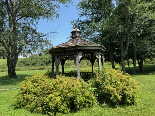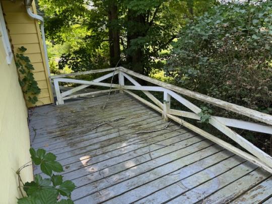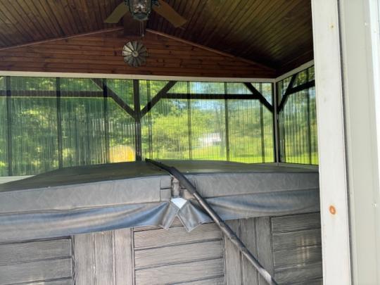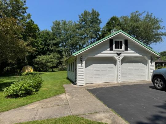 Single family home located on 1.10 acres on a quiet, dead-end street in the Village.  This property includes a blacktop driveway, 2 car garage with 2 electric door openers, an enclosed hot tub, a gazebo and storage building.  Enter this home from the covered front porch.  The main floor of this home includes a living room, family room with a gas fireplace and a large formal dining room.  The large kitchen has tongue and grove cathedral ceilings, an island, and lots of cabinet and counter space.  The breakfast nook leads to the side deck.  A second door in the kitchen leads to a spacious partially covered deck with composite decking, the enclosed hot tub, and beautiful view of the private yard.  The main floor also has a bedroom with a closet and a large full bath with a jetted tub and walk-in shower.  Upstairs you will find 2 large bedrooms and an office with a door to the upper deck.  There is a partial basement.